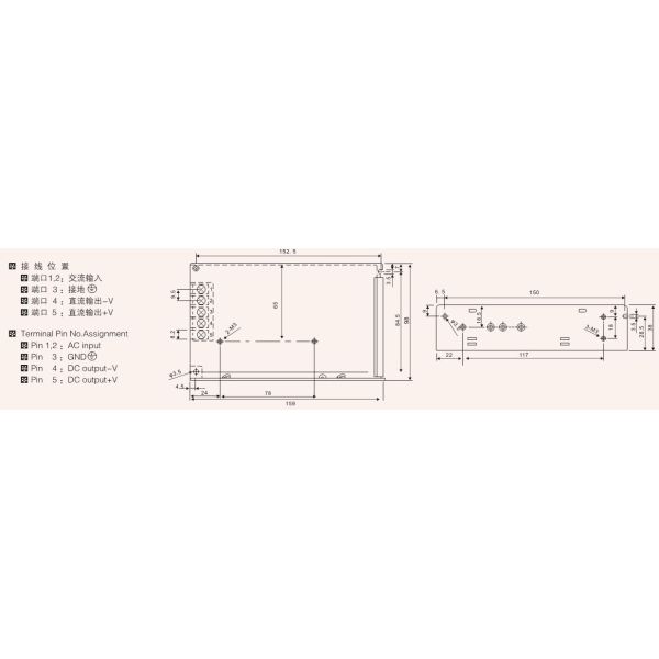 159*98*38mm Switch Mode Power Supplies S-60-12 I / P O / P 1.5KV Images |